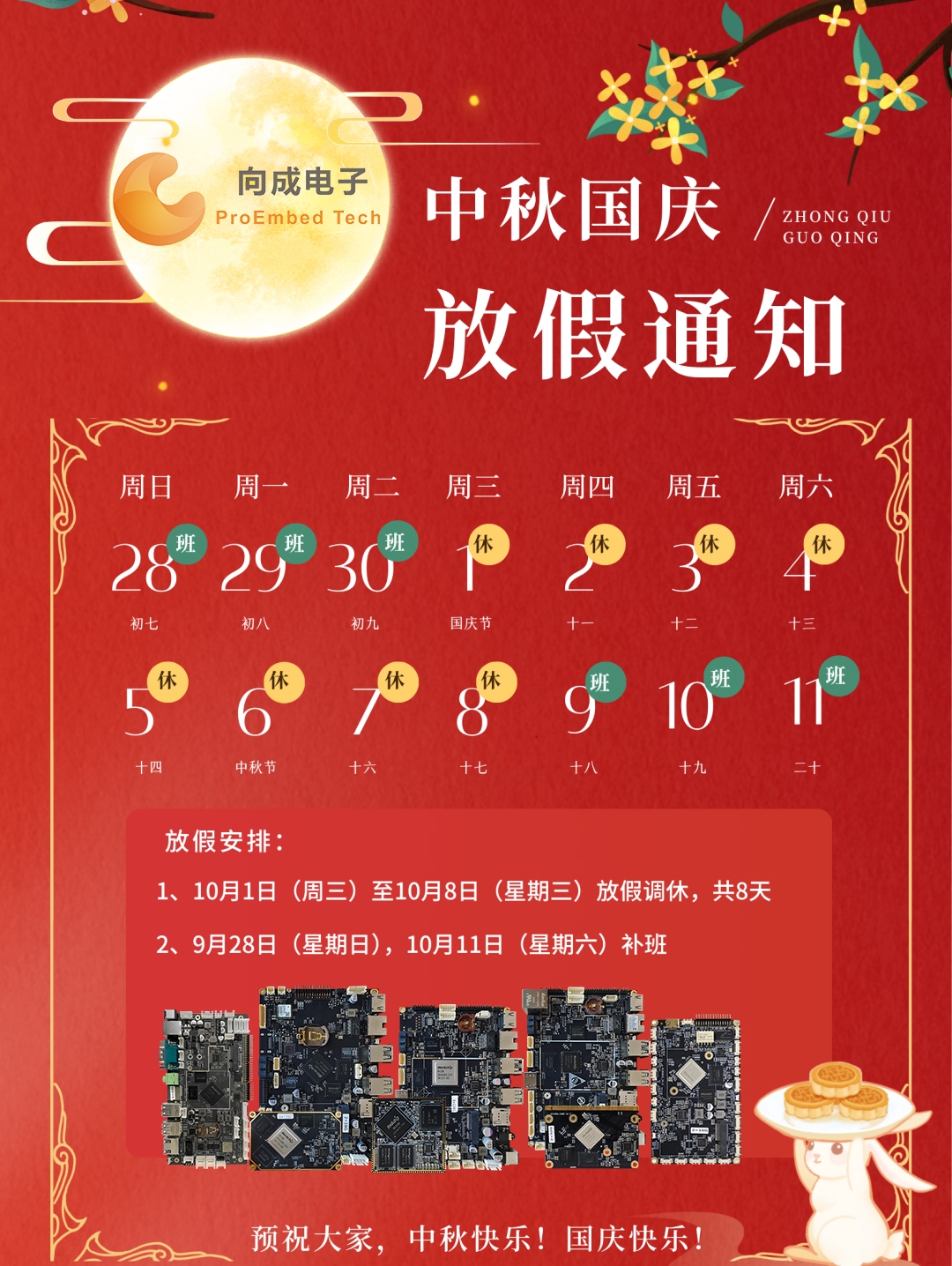 根據(jù)國(guó)務(wù)院辦公廳《關(guān)于2025年部分節(jié)假日安排的通知》,結(jié)合我司工作情況,現(xiàn)將2025年國(guó)慶節(jié)、中秋節(jié)放假及相關(guān)安排如下:賦能工業(yè)未來(lái):向成電子XC3576H工控主板多領(lǐng)域應(yīng)用前景